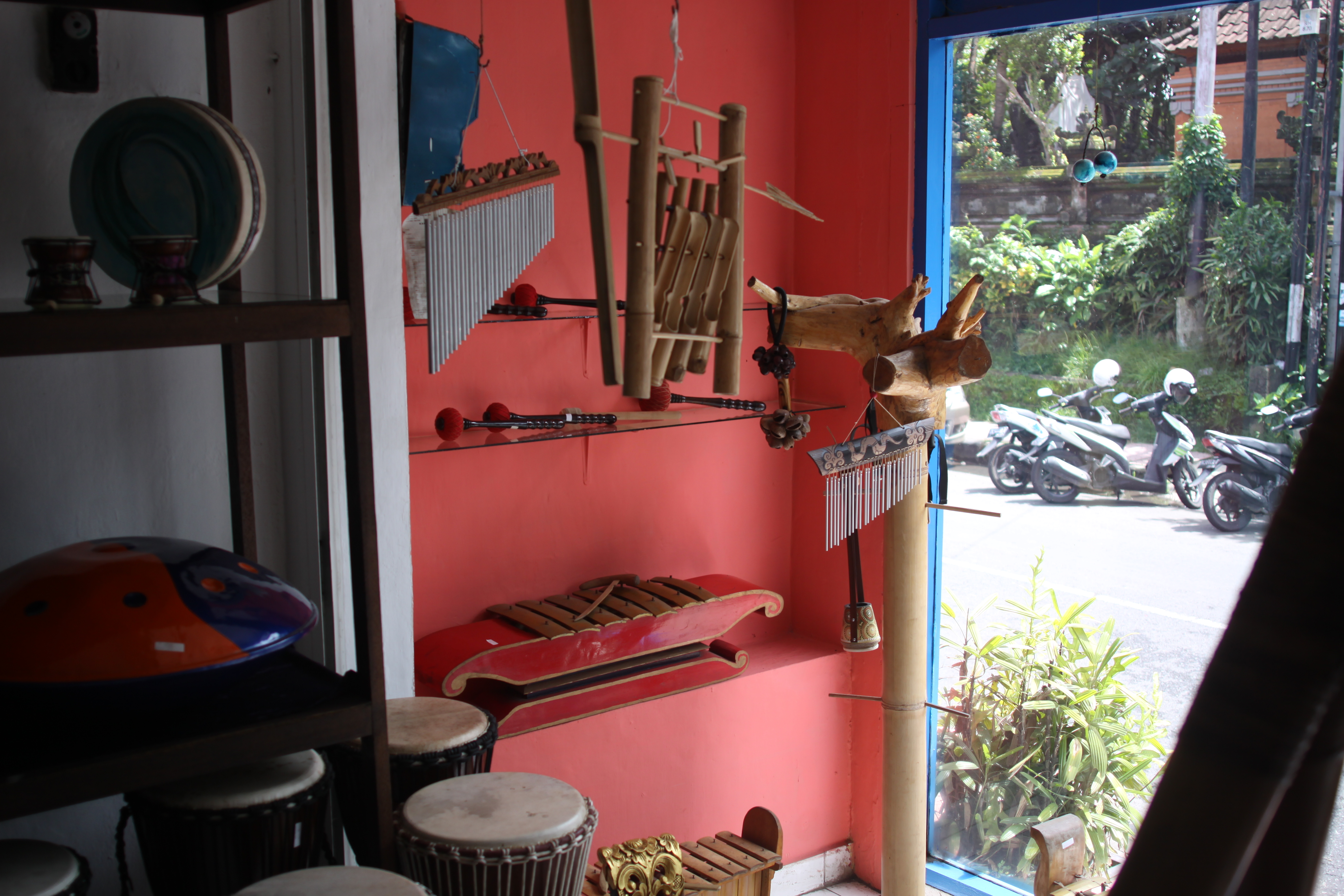 ウブドの中心街、王宮から徒歩5分程度のところにある楽器屋、Moari(モアリ)へ行ってきました。