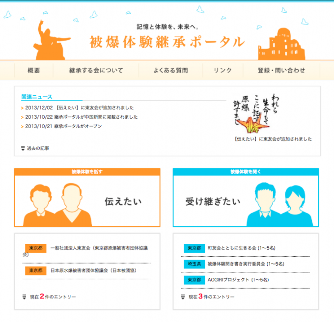 被爆体験継承ポータルのサイト構築を担当いたしました。