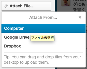 もちろん、ファイルの添付も可能です。Google DriveやDropboxにも連携しています。