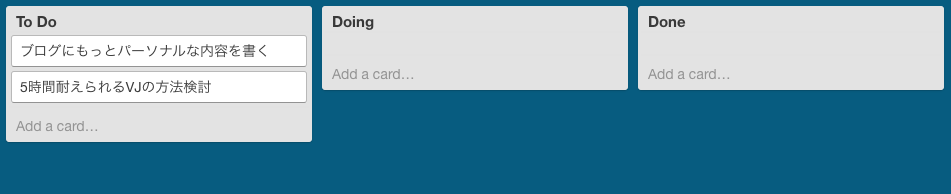 To Doにタスクリストを作って、作業が開始されたらDoingにドラッグして、作業が完了したらDoneに移す、といった使い方をします。