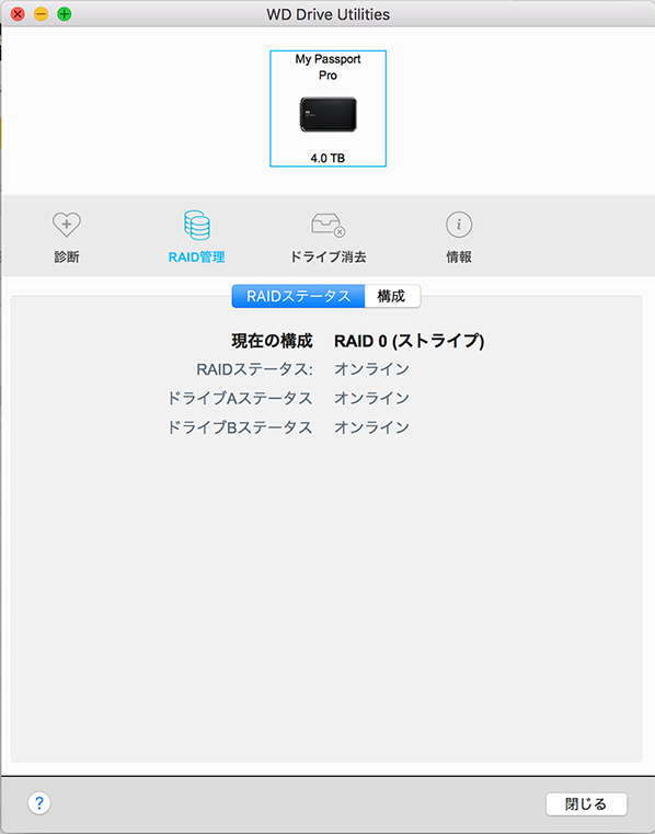 RAIDの設定は付属のWD Disk Utilitiesでできます。