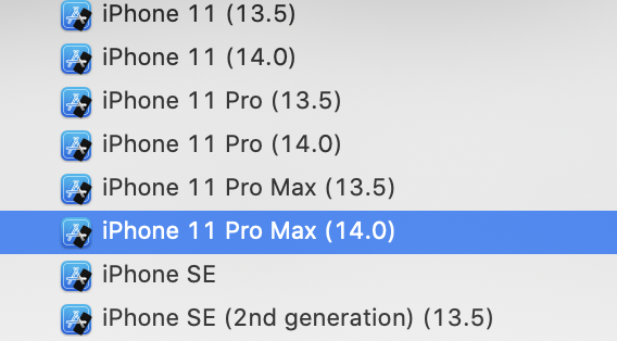 "ios": "react-native run-ios --simulator=\"iPhone 11 (14.0)\"",Xcodeのシミュレータ選択欄と同じように記述します