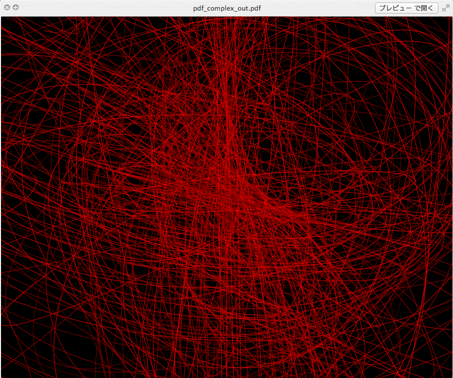 以上のコードを組み込むだけで簡単にアニメーションのキャプチャーをPDFで出力することが出来ます。自分はOPENGLのスケッチで実行しましたがうまく行きました。