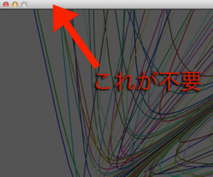 Mac版のProcessingでタイトルバーを非表示にしたかったのですが、なかなか方法が出てこず困っていたのですが、海外のフォーラムでこれで行けるのでは?という提案があったので試した所無事に消えました。