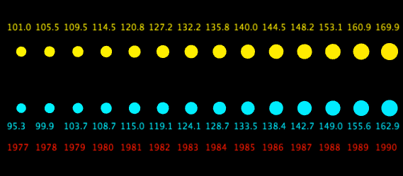 ellipse(x,y,value,value);//CSVの値を半径とした円を書く