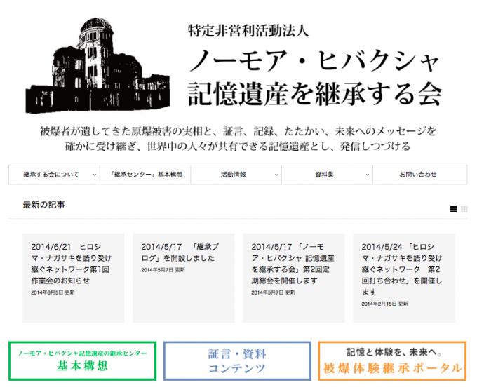 ノーモア・ヒバクシャ記憶遺産を継承する会のサイト移転・構築を担当いたしました。