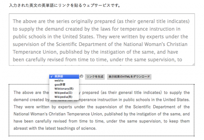 入力された英文の英単語にリンクを貼るウェブサービスです。