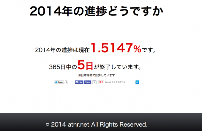 20XX年が何%完了、1月1日から何日経過したのかを表示します。