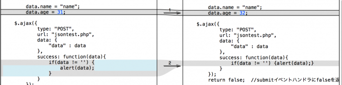 HTMLやCSSなどのテキストデータの差分を比較するのに便利です。