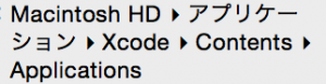 Xcodeのパッケージ内容を表示したらさらに、Contents → Applications を開きます。
