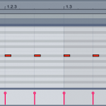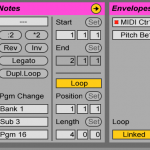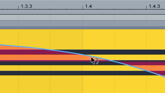 エンベロープの線上でaltキーを押しっぱなしにするとカーソルの形が変わり、ドラッグするとエンベロープがカーブします。