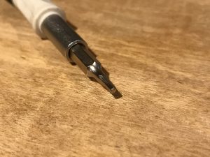六角のドライバーが必要です。ピッチがシビアです。1/16インチだそうです。私はたくさんビットが付属しているドライバーセットの中にちょうどいいのがあったのでそれを使いました。