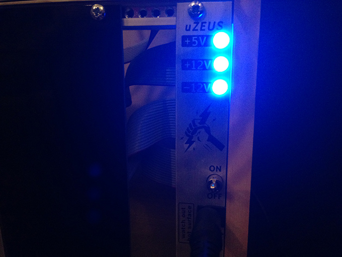 電源はモジュールに電源を供給するためのユニットです。モジュラーシンセと同じようにラックにマウントするタイプのもの(HappyEndingKitについてくるμZeus)やケースに内蔵されているもの(例えば、Pittsburgh Cell[48],Cell[90])があります。