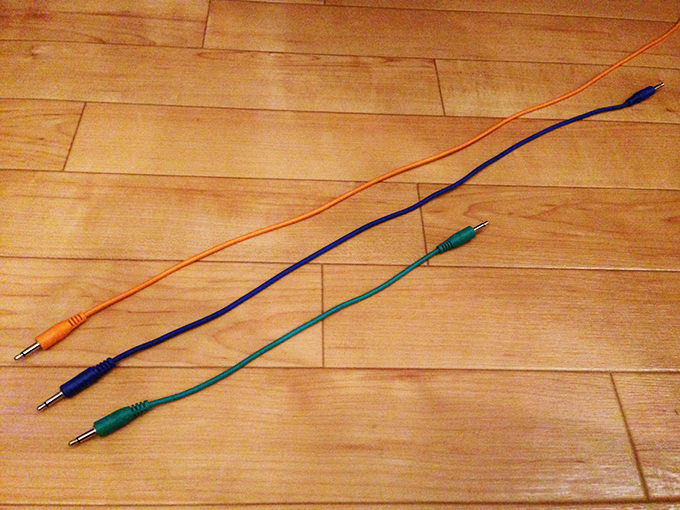 パッチケーブルは、モジュール同士を接続するためのケーブルです。最近のモジュールでは3.5mmのミニプラグのケーブルを使います。オーディオ信号やCV,GATEなどのモジュールを制御するための信号を送るために必要です。モジュールのオーディオやCV,GATEのアウトプット、インプット数に合わせて用意しておくと良いでしょう。長さはだいたい15cm〜70cm程度くらいです。あまり短いものばかりだと、ケースの両端までケーブルが届かないこともあるので、適宜色々な長さのパッチケーブルを用意しておくと便利です。