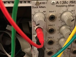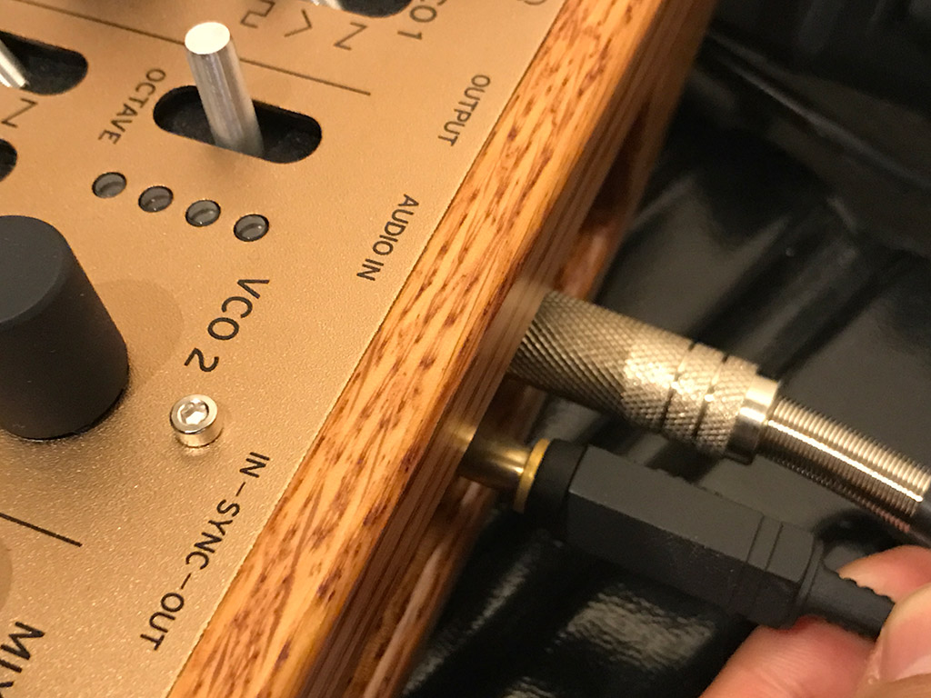 monologueのAUDIO INに波形を確認したい音源を接続します。今回は例としてモジュラーシンセサイザーを接続します。