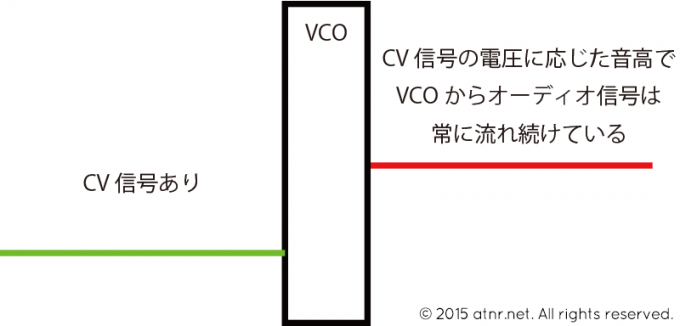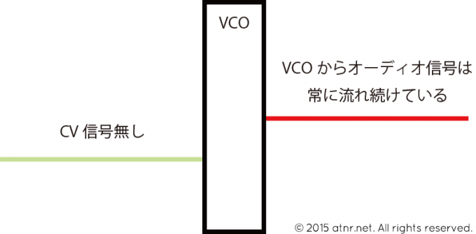CV信号を全く入力しない状態でも、VCOは常に音を出力し続けています。