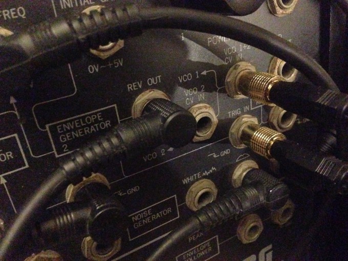 SQ-1のCV OUTとMS-20のVCO1+2 CV INを接続して、