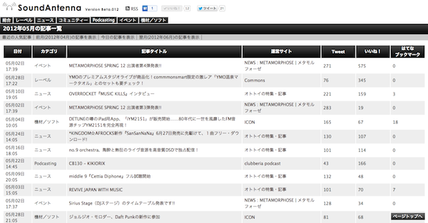 音楽情報サイトや音楽レーベルの更新情報を取得するアンテナサイトSoundAntennaを制作いたしました。