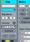 先ほどのMIDIクリップに対して、Abletonのグルーヴ機能をかけてみます。