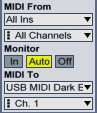 ループを作ったMIDIトラックのMIDI OUTをUSB MIDI Dark Energyに設定します。(A190-3はDark Energyと同じドライバとして認識されるようです。)