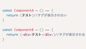 シンタックスハイライターのPrismを使っているのですが、Reactのコードを掲載するときにコンポーネント内のHTMLタグが残っていると消えてしまいます。